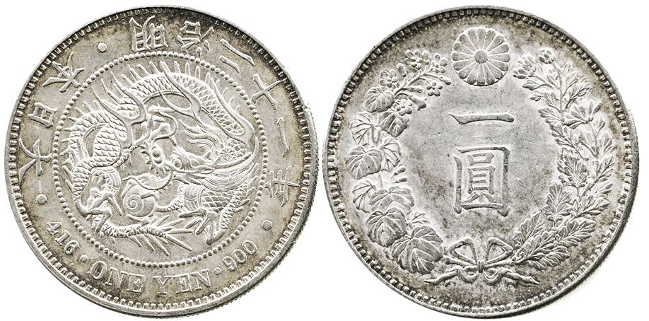 Japan, 1 yen, Meiji era, year 45 (1912).