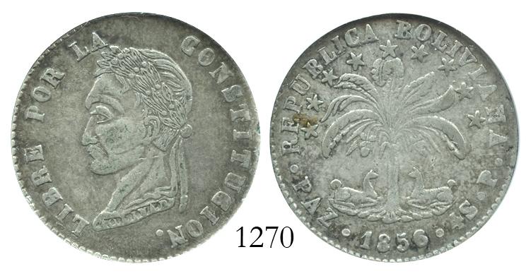 La Paz, Bolivia, 4 soles, 1856P, encapsulated NGC VF-35.