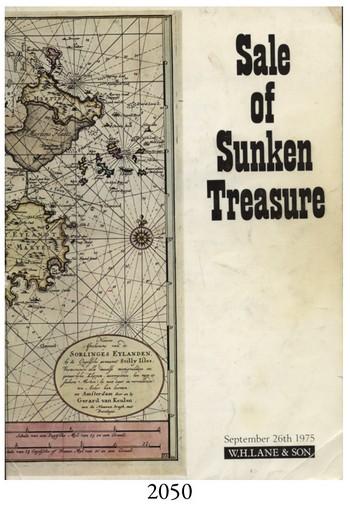 Lane & Son (Penzance). Sale of Sunken Treasure (September 26, 1975). VG. An important offering of 9 different wrecks off the British Isles, with historical background on each, riding on the heels of the success of the Hollandia and Association auctions by this firm in the two years prior. Pedigreed to the Tom Sebring Treasure Library.