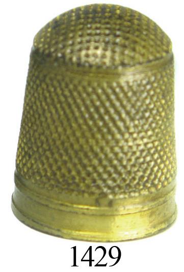 Large brass sailmaker's thimble in choice condition. 4.1 grams, 1" tall and ¾" in diameter. The brassy exterior of this large and fully intact thimble looks almost new (no dents or splits) but the interior is lightly stained with orange and green, probably the nicest shipwreck thimble we have ever handled. From the Capitana El Rubí and pedigreed to Art McKee's Sunken Treasure Museum, with certificate.