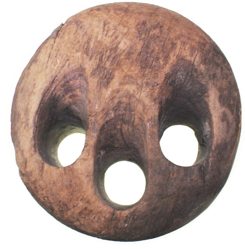 Large lignum vitae deadeye from an unidentified shipwreck of the 1700s. 2294 grams, 7" in diameter and 4" thick. Of the various parts of the rigging of a wooden sailing ship, perhaps the most recognizable is the deadeye, with three worn holes in middle perpendicular to the groove around the perimeter, the present specimen fully intact and heavy, great for a nautical display.