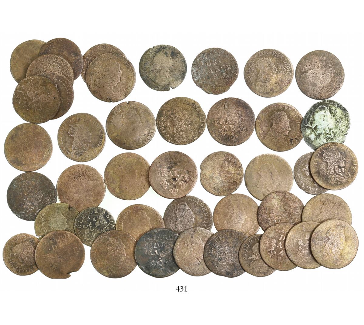 Large lot of 44 miscellaneous European billon and copper coins (mostly French liards) of the mid-160