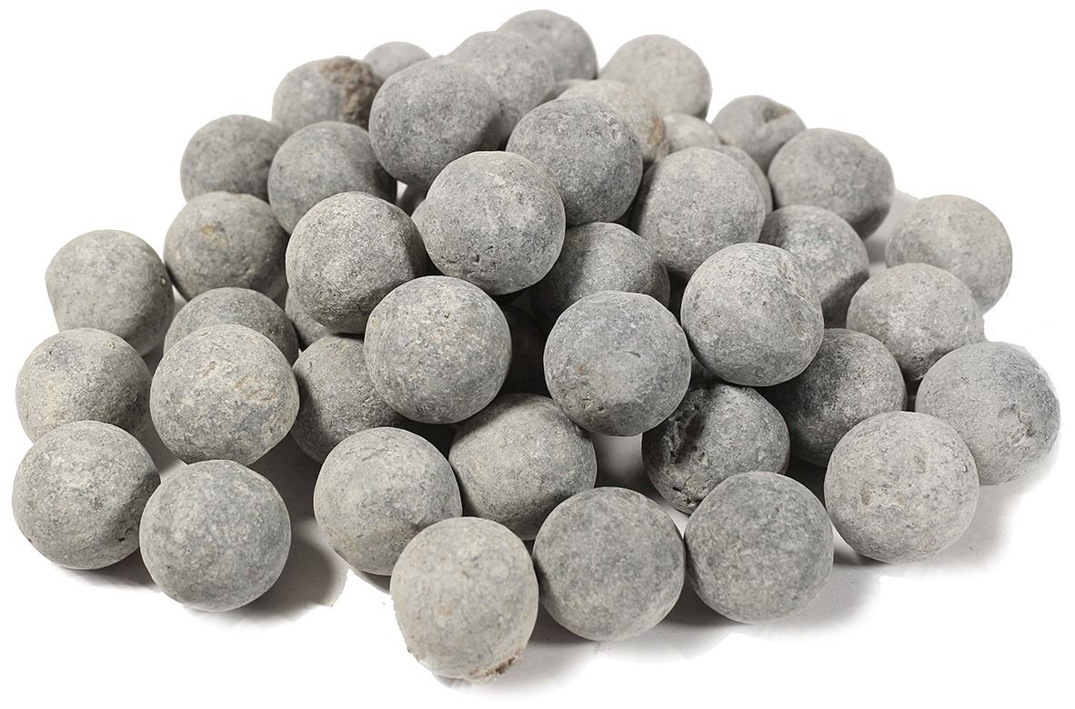 Large lot of 50 lead musketballs from the Tilbury (1757). 1394 grams, between 1-/2" to 5/8" in diameter. Common, simple balls all with uniform lightly dusty surfaces, useful for resale or display. From the Tilbury (1757), with original certificate from the consignor.