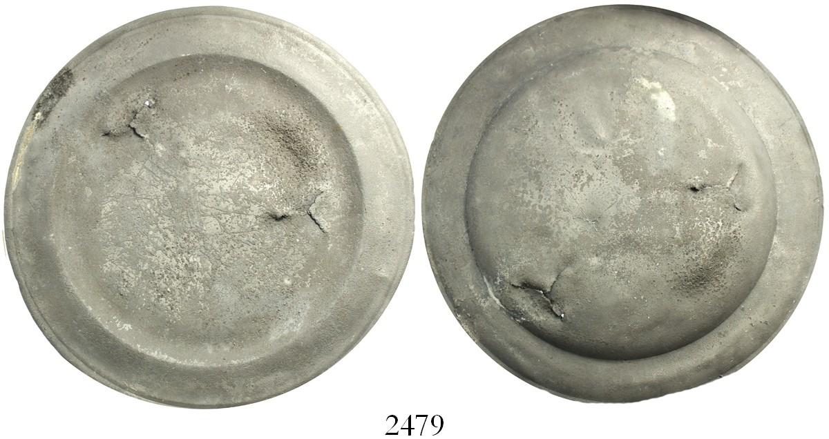 Large pewter plate. 976 grams, 12" in diameter. Fully intact except for two cracks in the bowl section, with 1-1/2" rim, no visible markings, very lightly oxidized surfaces but still very solid. From the Spanish 1733 Fleet, Florida Keys, pedigreed to the Marty Meylach collection.