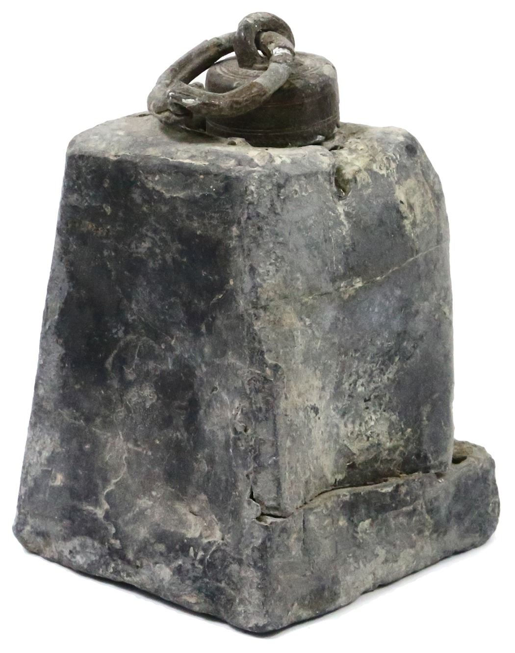 Lead inkwell with screw cap, ex-Campen (1627). 875 grams, 3-1/2" x 2-1/4" x 2-1/4". Heavy and sturdy artifact (as would befit use on a ship so as not to spill in rough seas), mostly intact, dark and dusty, with original screw cap, two sides with damage but overall in good condition. From the Campen (1627), with certificate from the salvor. Recovered from:Campen, sunk in 1627 off Isle of Wight, south of England