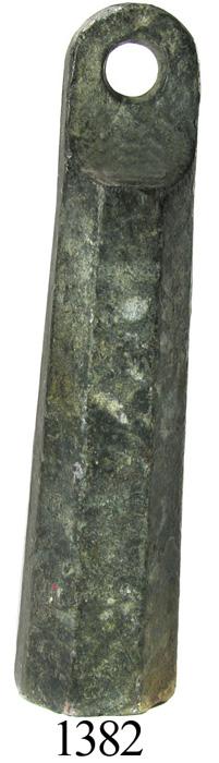 Lead sounding weight. 5 lb 4 oz, 7½" tall and 5½" max diameter. A typical, tall weight with large hole (for rope) at top and depression in bottom for wax (to check sand composition at the same time), no encrustation, nice dark lead color all over. Recovered from: Spanish 1715 Fleet, east coast of Florida.
