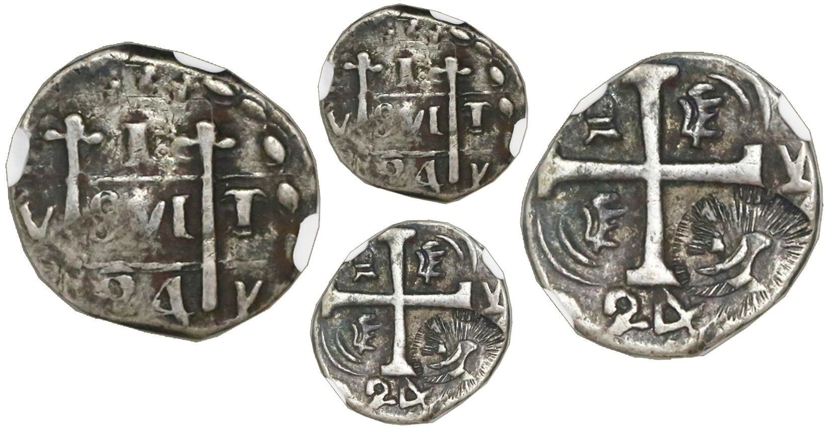 Leon, Nicaragua, liberty cap countermark (1824-5) on a Tegucigalpa, Honduras, provisional "imitation cob" 1 real 1824Y with backwards lions, NGC VF 30, c/s VF standard, ex-Richard Stuart (stated on label). KM-unl. 2.43 grams. Choice full countermark on cross side, the host deeply toned, with full but off-center cross and pillars, two dates and Y's, the design without any P's or M like on the rest of the "PMPY" series to which this belongs. Pedigreed to the Richard Stuart collection. NGC #4660732-011.