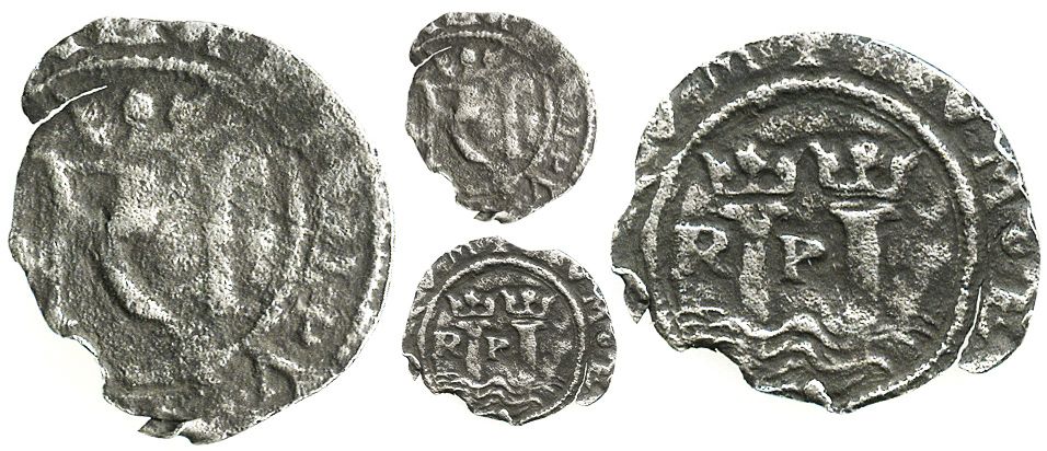 Lima, Peru, 1/2 real, Philip II, assayer R (Rincon). S-L1; KM-3; CT-702. 0.7 gram. Thin and corroded (small piece of edge missing) from salvage (probably Rimac River), but with full inner details and some legend, toned VF overall.