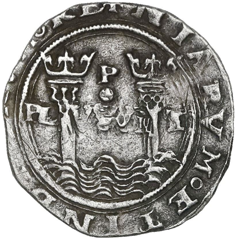Lima, Peru, 1 real, Philip II, assayer R to left, motto PL-VSVL-T, legends HISPANIA / NIARVM. S-L1; KM-6; Cal-209. 3.17 grams. Sharply detailed VF+ with contrasting toning, light old marks and slight surface porosity, well struck on a small-ish flan yet with decent legends nonetheless (including bold PHILIP).