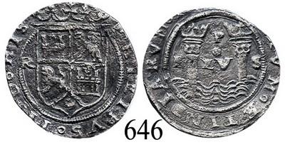 Lima, Peru, 1 real, Philip II, assayer Rincón, scarce. S-L1. 2.7 grams. Choice specimen of a desirable issue (first coinage of South America), well-centered and sharp strike on a round flan with much bold legend (full PHILIPPVS), particularly nice pillars, the shield slightly doubled but crisp, the crown full, lightly toned and XF+ for grade but with a hint of corrosion as from salvage (like most). Probably from the Rimac River in Lima, Peru.