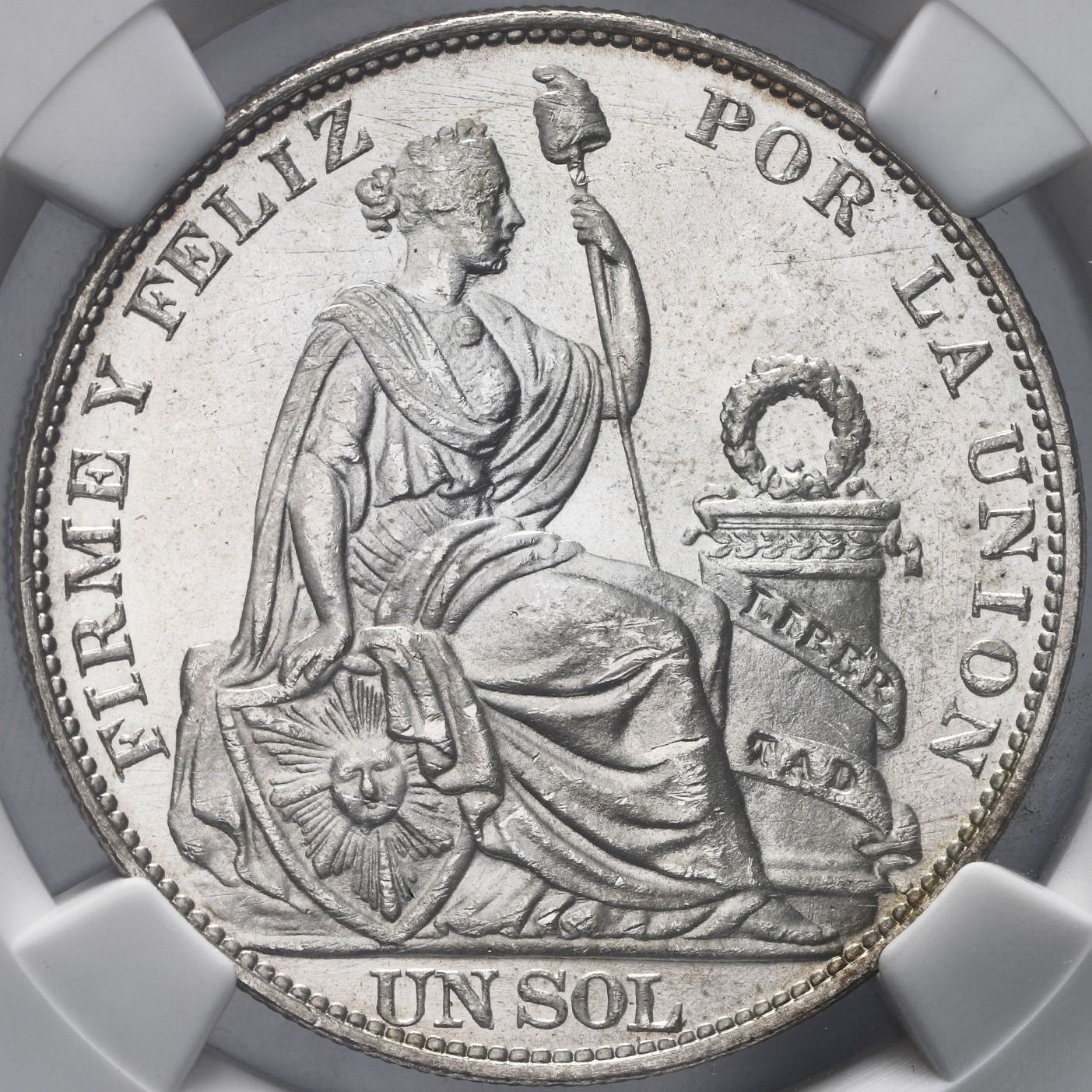 Lima, Peru, 1 sol, 1916FG, incuse LIBERTAD, NGC MS 64.