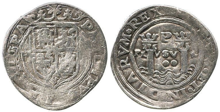Lima, Peru, 2 reales, Philip II, assayer R (Rincon), motto as PL-VSV-L, obverse legend ending in HIS
