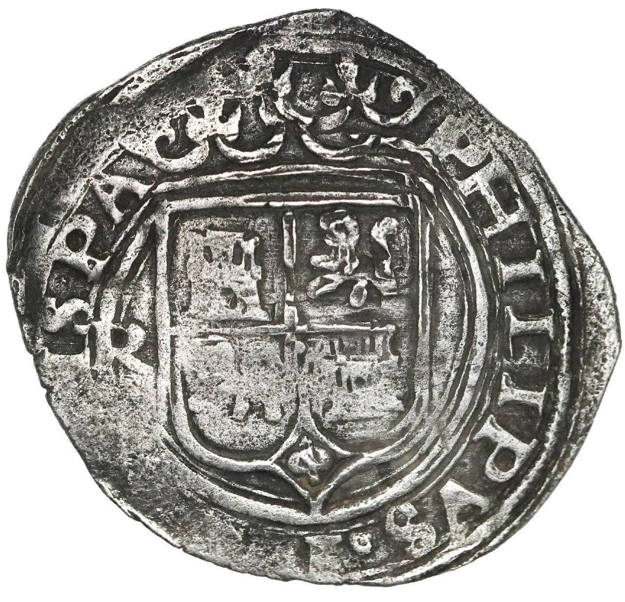 Lima, Peru, 2 reales, Philip II, assayer R (large) to left, motto PL-VSV-L, legends HISPA / NIARVM. S-L1; KM-8; Cal-333. 6.38 grams. Very broad, thin, oblong flan with full crown and much bold legend (particularly the king's name), full but partially weak and slightly doubled interiors, clear assayer (large), nicely toned over light surface porosity, XF for actual wear.