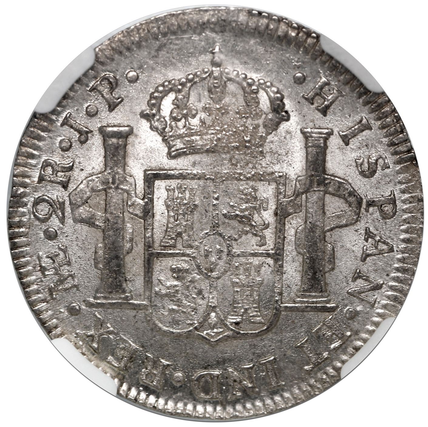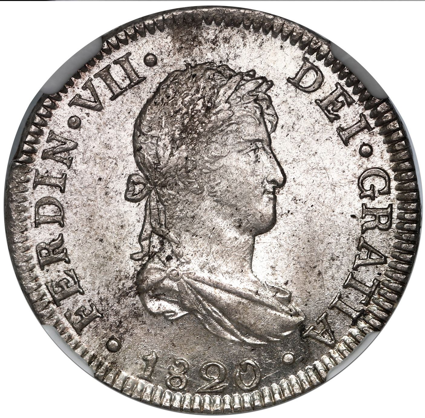 Lima, Peru, bust 2 reales, Ferdinand VII, 1820 JP, NGC MS 64.