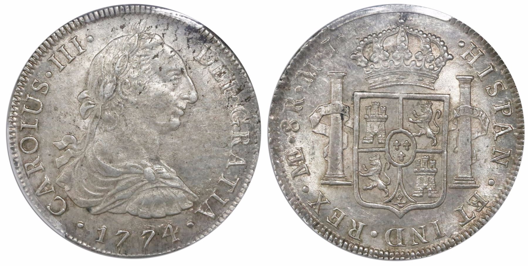Lima, Peru, bust 8 reales, Charles III, 1774MJ, encapsulated PCGS AU 55, finest known in PCGS census