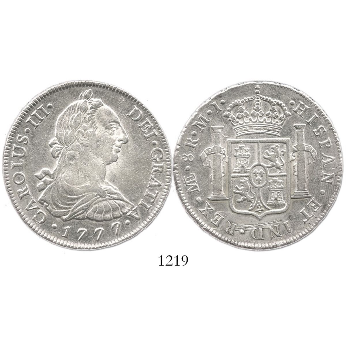 Lima, Peru, bust 8 reales, Charles III, 1777MJ.