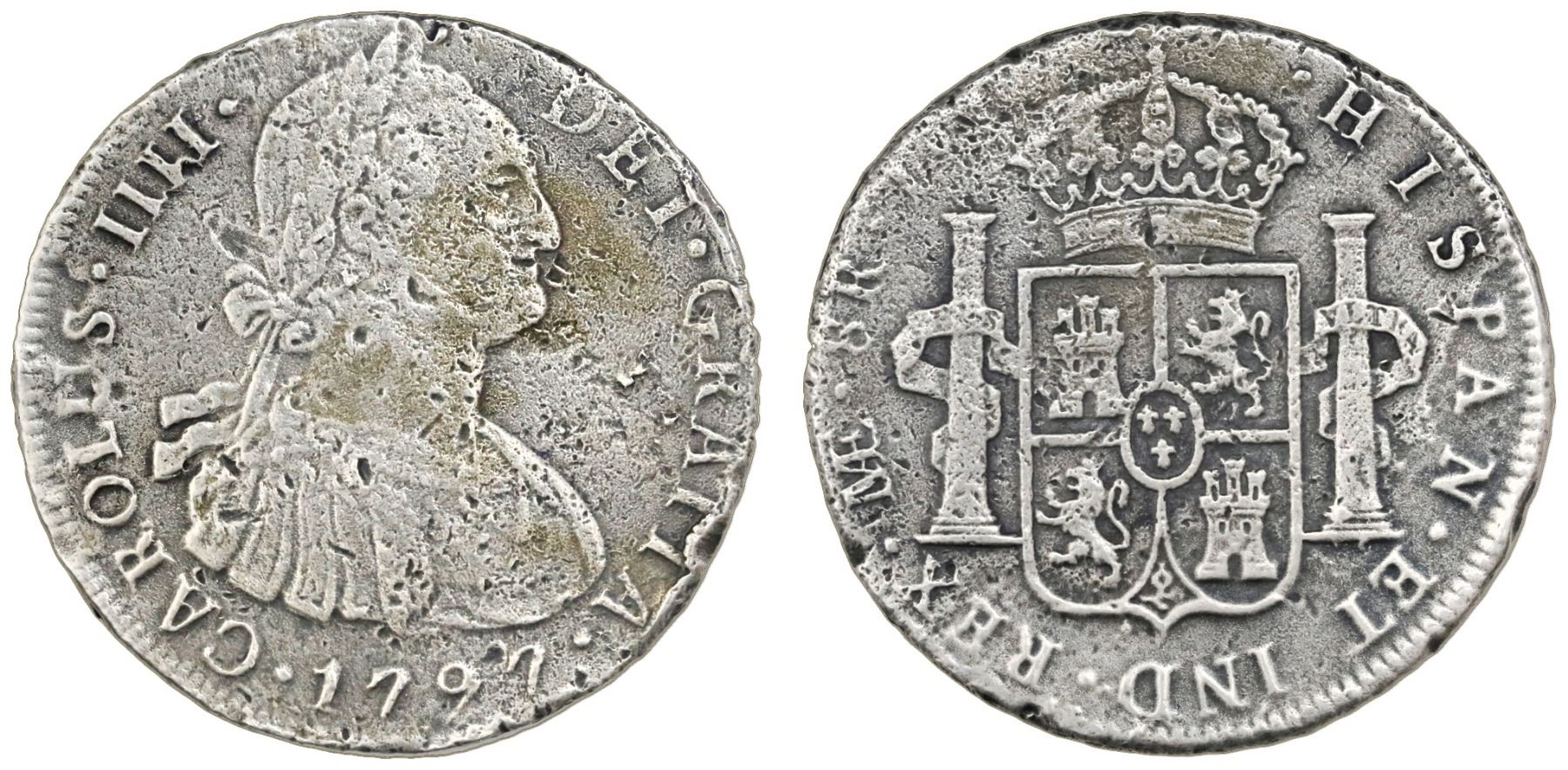 Lima, Peru, bust 8 reales, Charles IV, 1797IJ.