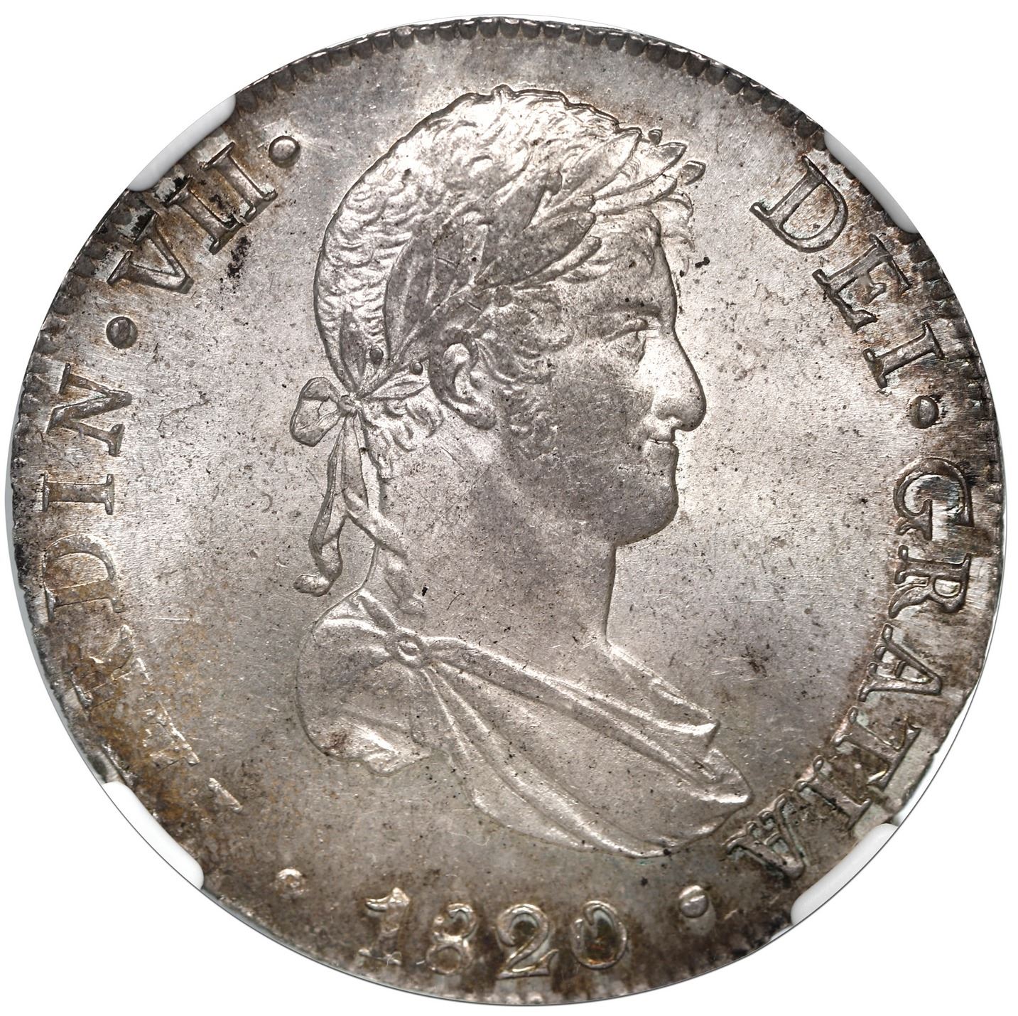 Lima, Peru, bust 8 reales, Ferdinand VII 1820 JP, NGC MS 63.