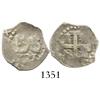 Lima, Peru, cob 1/2 real, 1721. S-L20; KM-30; CT-1770. 1.4 grams. Broad flan with full but weak monogram and cross, technically no worse than Fine. Pedigreed to the Roberto Mastalir collection of Lima silver cobs.