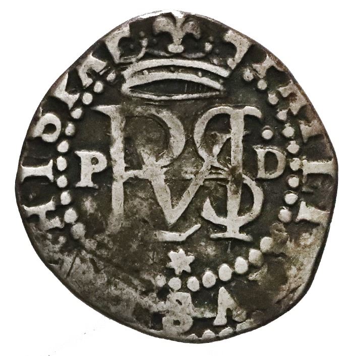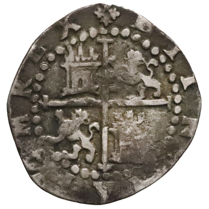 Lima, Peru, cob 1/2 real, Philip II, assayer Diego de la Torre, P to left, dot-D to right, star at bottom. S-L4; KM-unl (5 for type); Cal-116. 1.57 grams. Nice VF with full monogram and cross, a few spots of strike weakness but otherwise most of the legends visible too, contrasting dark-toned fields. Pedigreed to the Arturo Rosenheim collection.