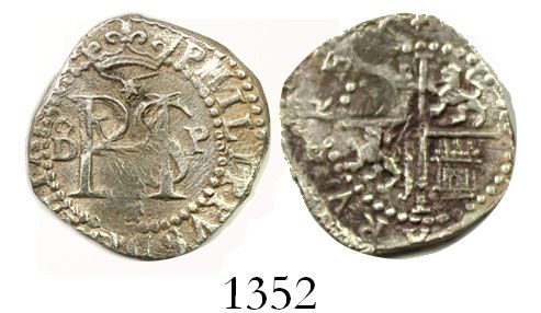 Lima, Peru, cob 1/2 real, Philip II, assayer Diego de la Torre, oD to left, P to right, * above and below monogram. S-L4; KM-5 ;CT-706. 1.68 grams. Nice XF details but with very light surface corrosion, full king's name, spotty toning, slightly doubled cross, interesting variety.