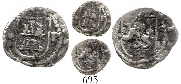 Lima, Peru, cob 1/4 real, Philip II, assayer Diego de la Torre, * to left, P to right of castle. S-L4; KM-2; CT-768. 0.6 gram. Good full castle and lion, AVF details but probably salvaged, mostly darkly toned.