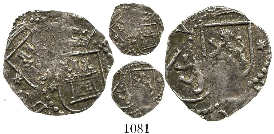 Lima, Peru, cob 1/4 real, Philip II, assayer Diego de la Torre, * to left of shield and * to right of lion. S-L4. 0.8 gram. Interesting coin with much-displaced double-strike on both sides, full castle and lion, toned AXF.