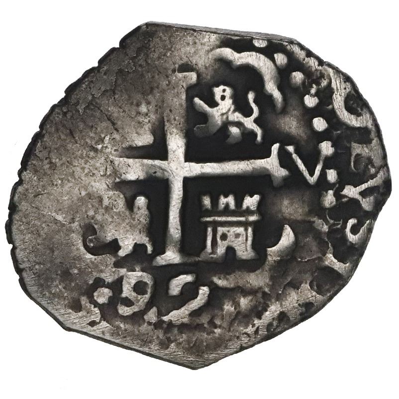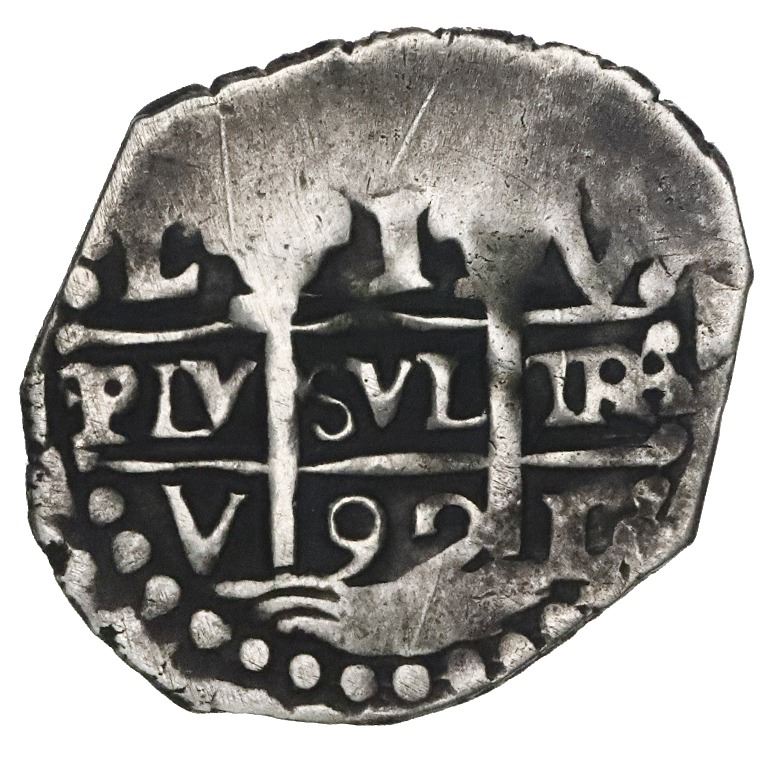 Lima, Peru, cob 1 real, 1692V. S-L10; KM-20; Cal-223. 2.49 grams. Bold AVF with two clear dates and assayer's initials, some hairlines and darkly toned fields. Pedigreed to the Arturo Rosenheim collection.