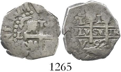 Lima, Peru, cob 1 real, 1692V.