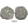 Lima, Peru, cob 1 real, 1692V. S-L10; KM-20; CT-682. 3.0 grams. Choice full pillars, 2 bold mintmarks, lightly toned AVF. Pedigreed to the Roberto Mastalir collection of Lima silver cobs.