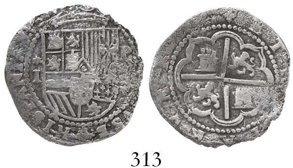 Lima, Peru, cob 1 real, Philip II, assayer Diego de la Torre, *-I to left, P-(oD) to right, pedigreed to the Atocha Research Collection (Plate Coin). S-L4; KM-7; CT-634. 2.74 grams. Choice full detail with contrasting toning, maybe a little worn but practically uncorroded, not rare numismatically but very rare as a Diego 1R from this wreck, and with a desirable pedigree. Pedigreed to the Atocha Research Collection and Plate Coin #110 in the catalog, also pedigreed to our Auction #6, with original lot-tag #168, and with special Fisher photo-certificate #236923. Recovered from: Atocha, sunk in 1622 west of Key West, Florida