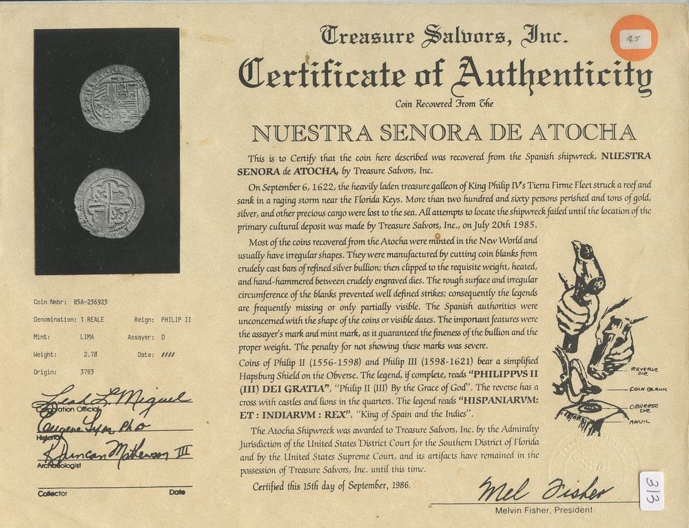 All items are genuine unless noted. Most shipwreck coins and artifacts come with a certificate of authenticity (please check the description for each item). By bidding in this auction you understand and agree to the Terms and Conditions posted here.
