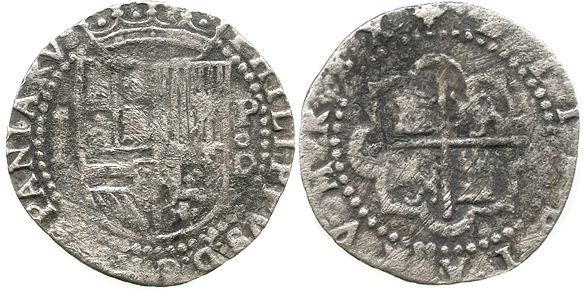 Lima, Peru, cob 1 real, Philip II, assayer Diego de la Torre, *-I to left, P-oD to right.