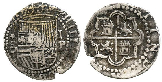 Lima, Peru, cob 1 real, Philip II, assayer Diego de la Torre, *-oD to left, I-P to right.