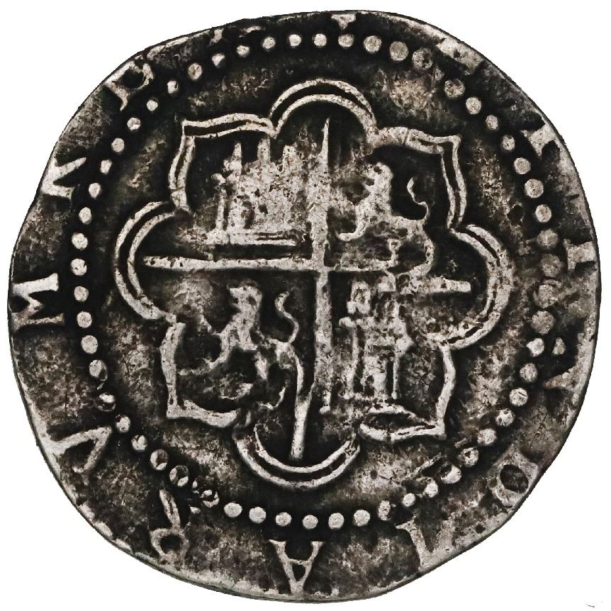 Lima, Peru, cob 1 real, Philip II, assayer Diego de la Torre, *-oD to left, I-P to right. S-L4; KM-7; Cal-213. 3.30 grams. Nice VF with full shield and cross (both slightly doubled), bold mintmark and assayer, complete king's name in legend, darkly toned fields.