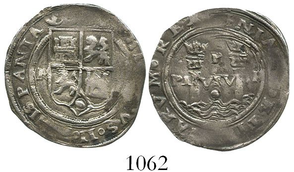 Lima, Peru, cob 1 real, Philip II, assayer Rincon, motto as PL-VSV-TR above dot, legends as HISPANIA / NIARVM. S-L1; KM-6. 3.1 grams. Broad, thin flan with full legends except for flat areas, bold inner details, VF with uneven toning.