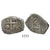 Lima, Peru, cob 2 reales, 1751R, rare. S-L23; KM-A43; CT-471. 6.4 grams. Oblong flan with nearly full cross and pillars, bold assayer and date, VG+. Pedigreed to the Roberto Mastalir collection of Lima silver cobs.
