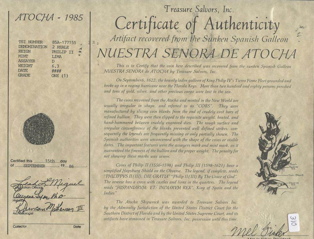 All items are genuine unless noted. Most shipwreck coins and artifacts come with a certificate of authenticity (please check the description for each item). By bidding in this auction you understand and agree to the Terms and Conditions posted here.