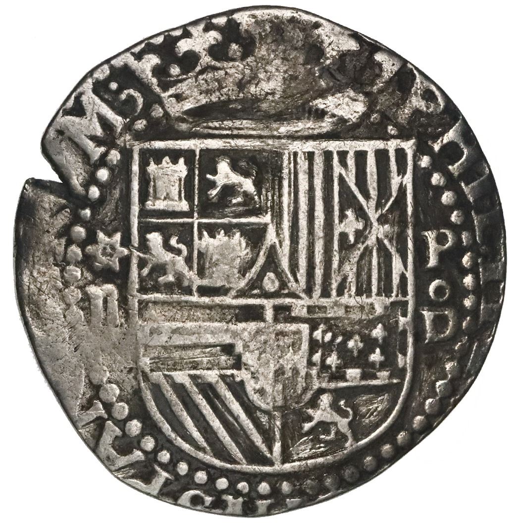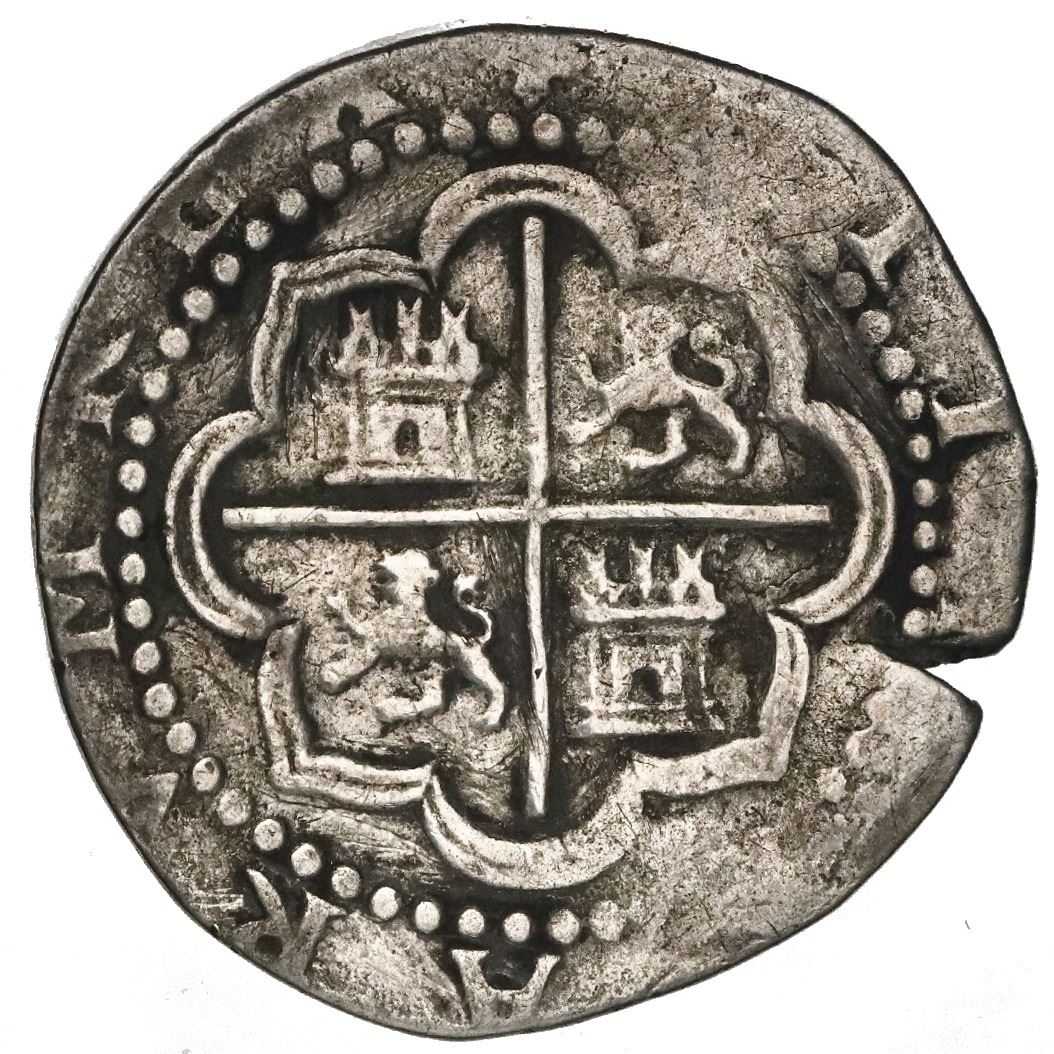 Lima, Peru, cob 2 reales, Philip II, assayer Diego de la Torre, *-ii to left, P-oD to right. S-L4; KM-9; Cal-338. 6.23 grams. About VF with some tooling in fields, complete shield and cross details with partial legends visible, small edge-crack as made. Pedigreed to the Arturo Rosenheim collection.