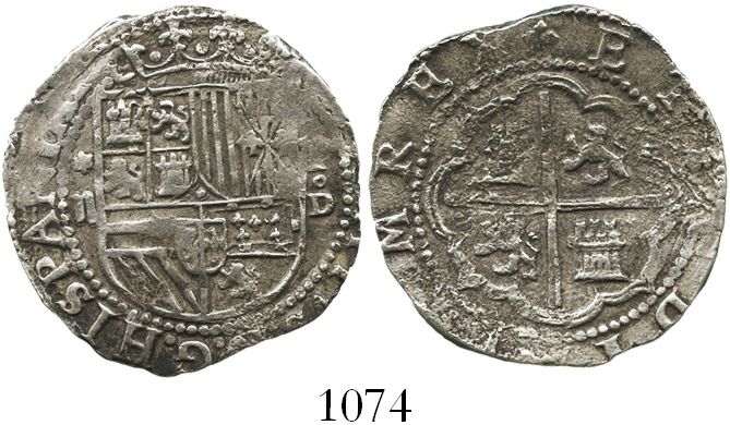 Lima, Peru, cob 2 reales, Philip II, assayer Diego de la Torre, *-ii to left and P-oD to right.