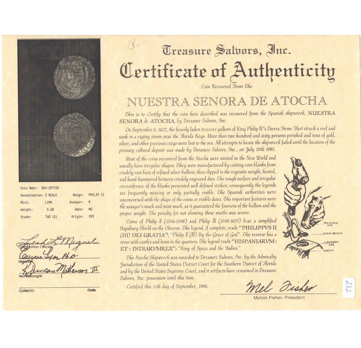 All items are genuine unless noted. Most shipwreck coins and artifacts come with a certificate of authenticity (please check the description for each item). By bidding in this auction you understand and agree to the Terms and Conditions posted here.