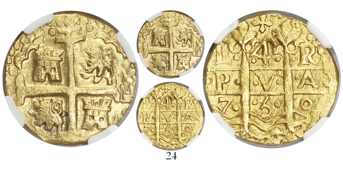 Lima, Peru, cob 4 escudos, 1750R, from the Luz (1752), encapsulated NGC MS 64, finest known in NGC c
