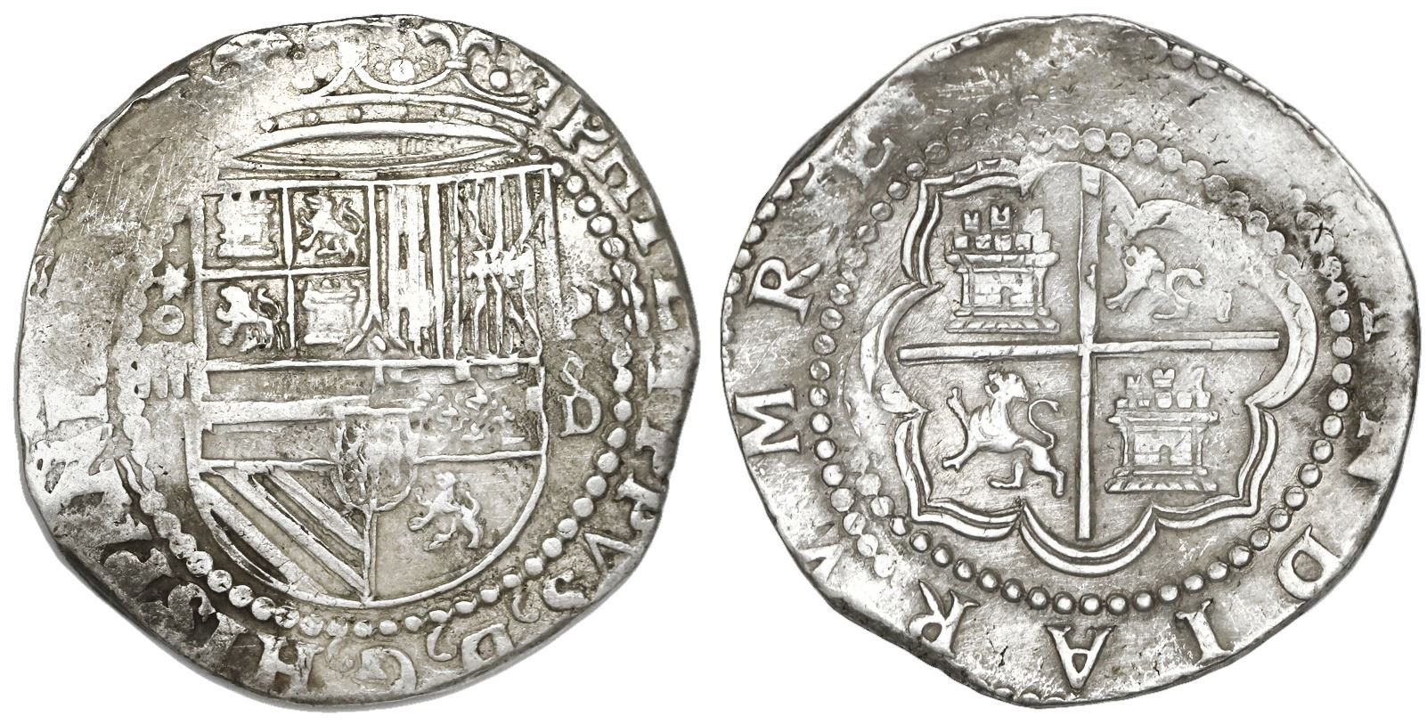 Lima, Peru, cob 4 reales, Philip II, Diego de la Torre, *-oiiii to left, P-oD/X to right, very rare.