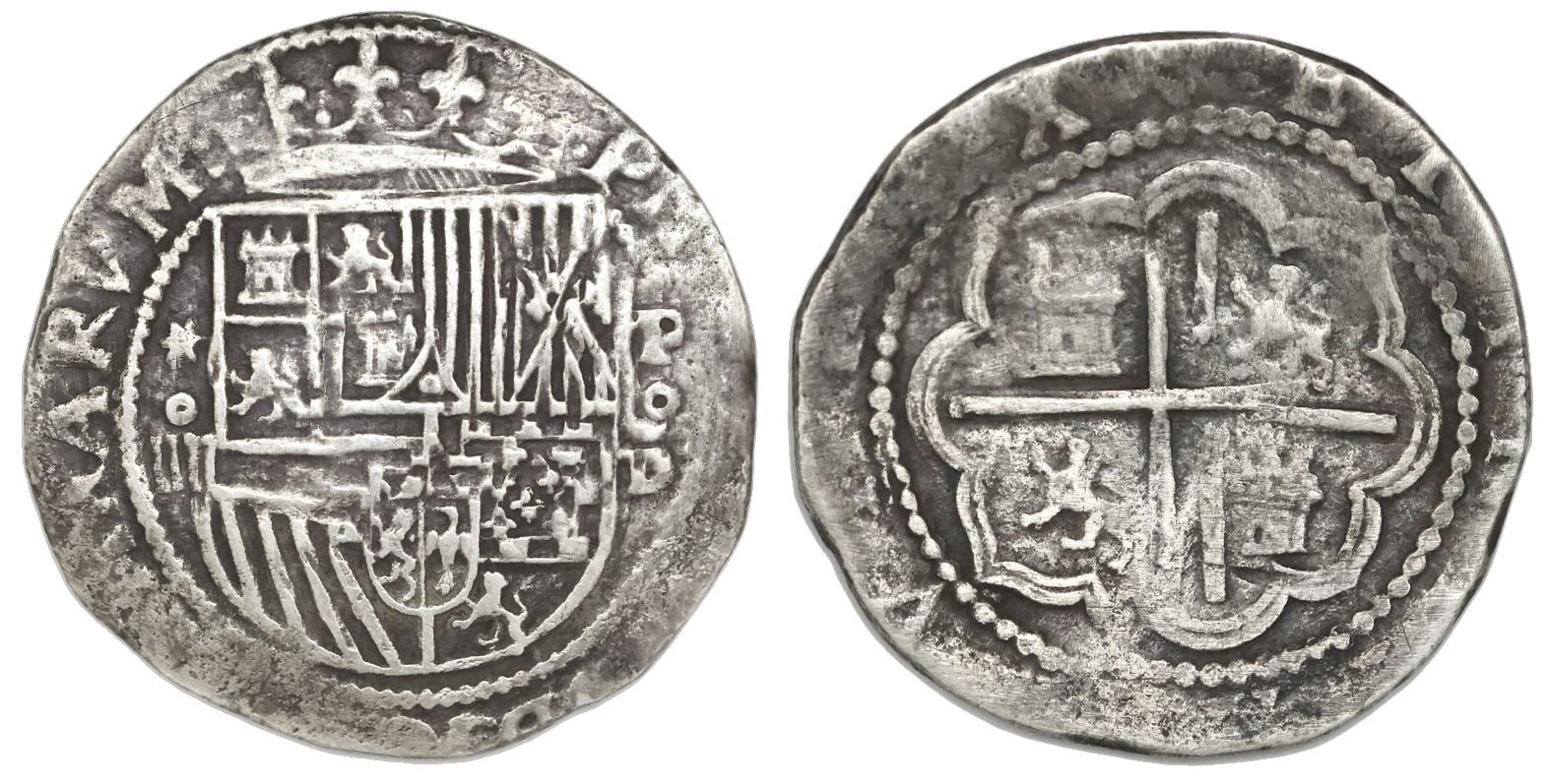 Lima, Peru, cob 4 reales, Philip II, assayer Diego de la Torre, *-oiiii to left, P-oD to right.