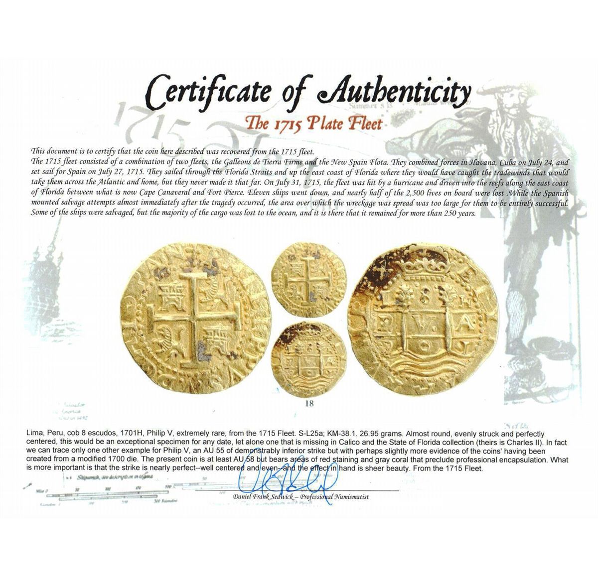 All items are genuine unless noted. Most shipwreck coins and artifacts come with a certificate of authenticity (please check the description for each item). By bidding in this auction you understand and agree to the Terms and Conditions posted here.