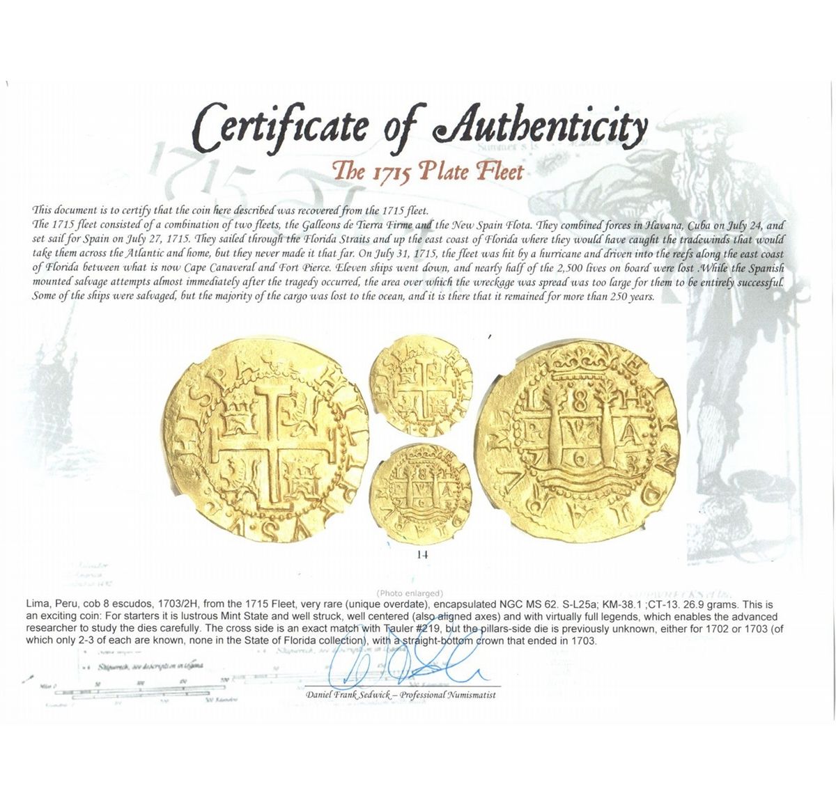All items are genuine unless noted. Most shipwreck coins and artifacts come with a certificate of authenticity (please check the description for each item). By bidding in this auction you understand and agree to the Terms and Conditions posted here.