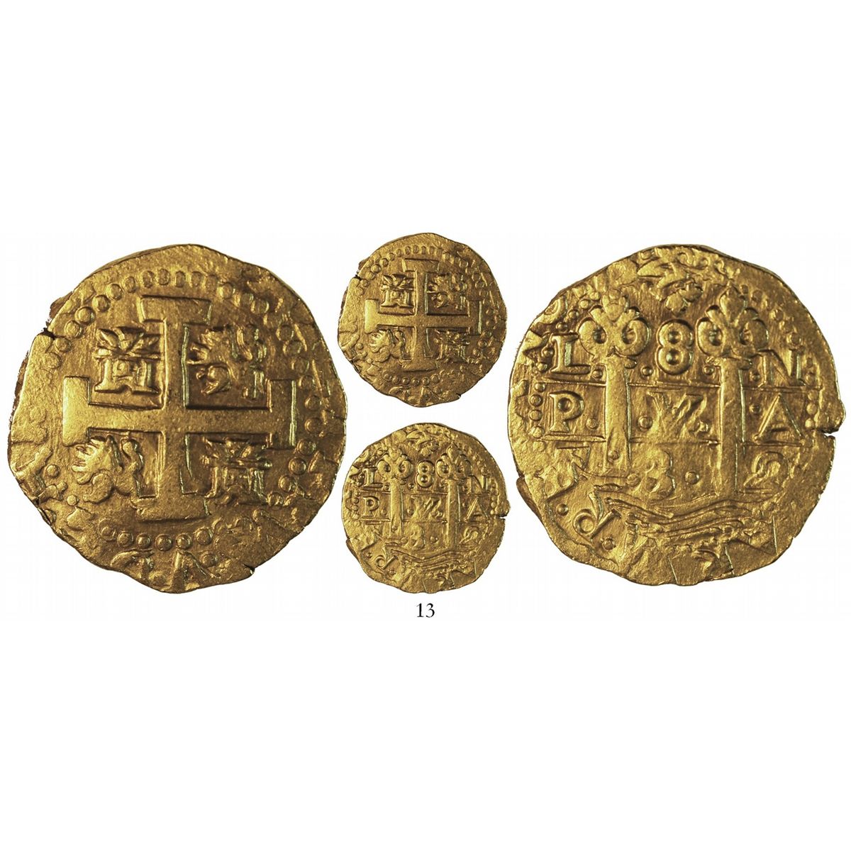 Lima, Peru, cob 8 escudos, 1732N. S-L29; KM-38.2; CT-47. 26.9 grams. Choice full cross and tops of full pillars, slightly doubled legends with clear second date, XF with deep toning on fields. With The Gold Mine photo-certificate from 1996.
