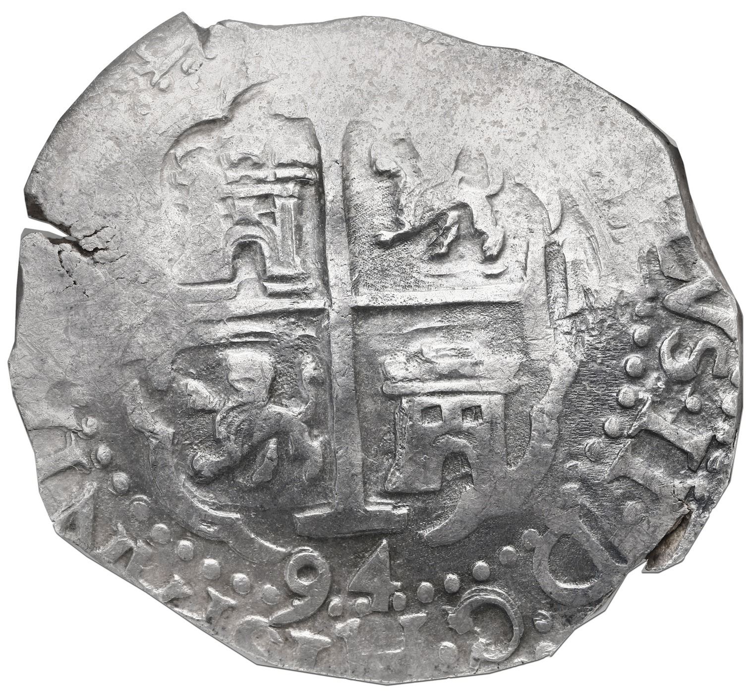 Lima, Peru, cob 8 reales, 1694 M, NGC AU 55 ("top pop").