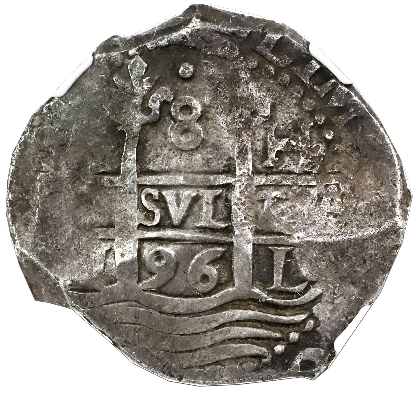 Lima, Peru, cob 8 reales, 1696H, NGC XF 45.