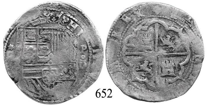 Lima, Peru, cob 8 reales, Philip II, assayer Diego de la Torre, *-8 to left, P-oD to right.